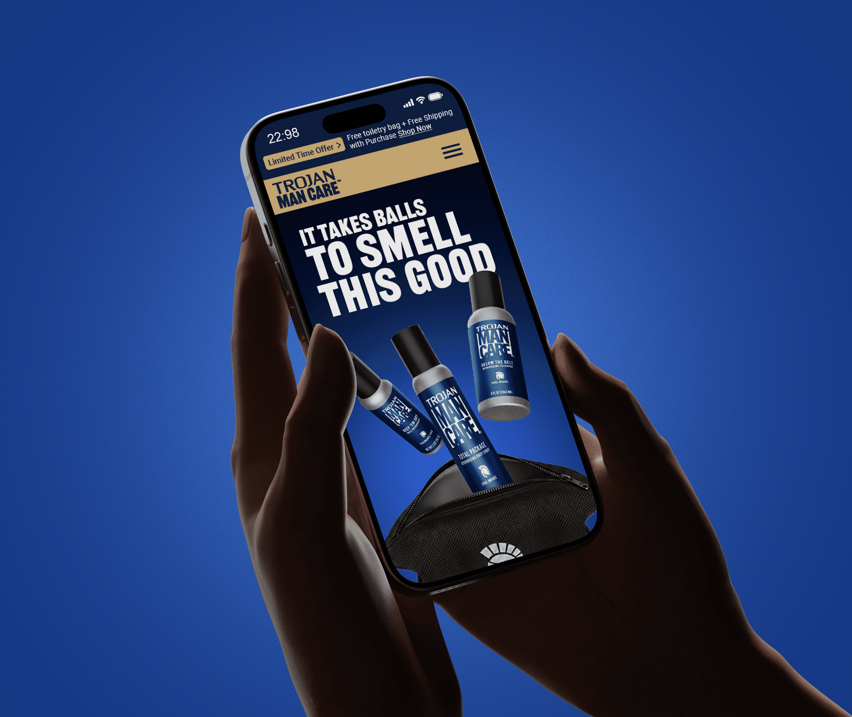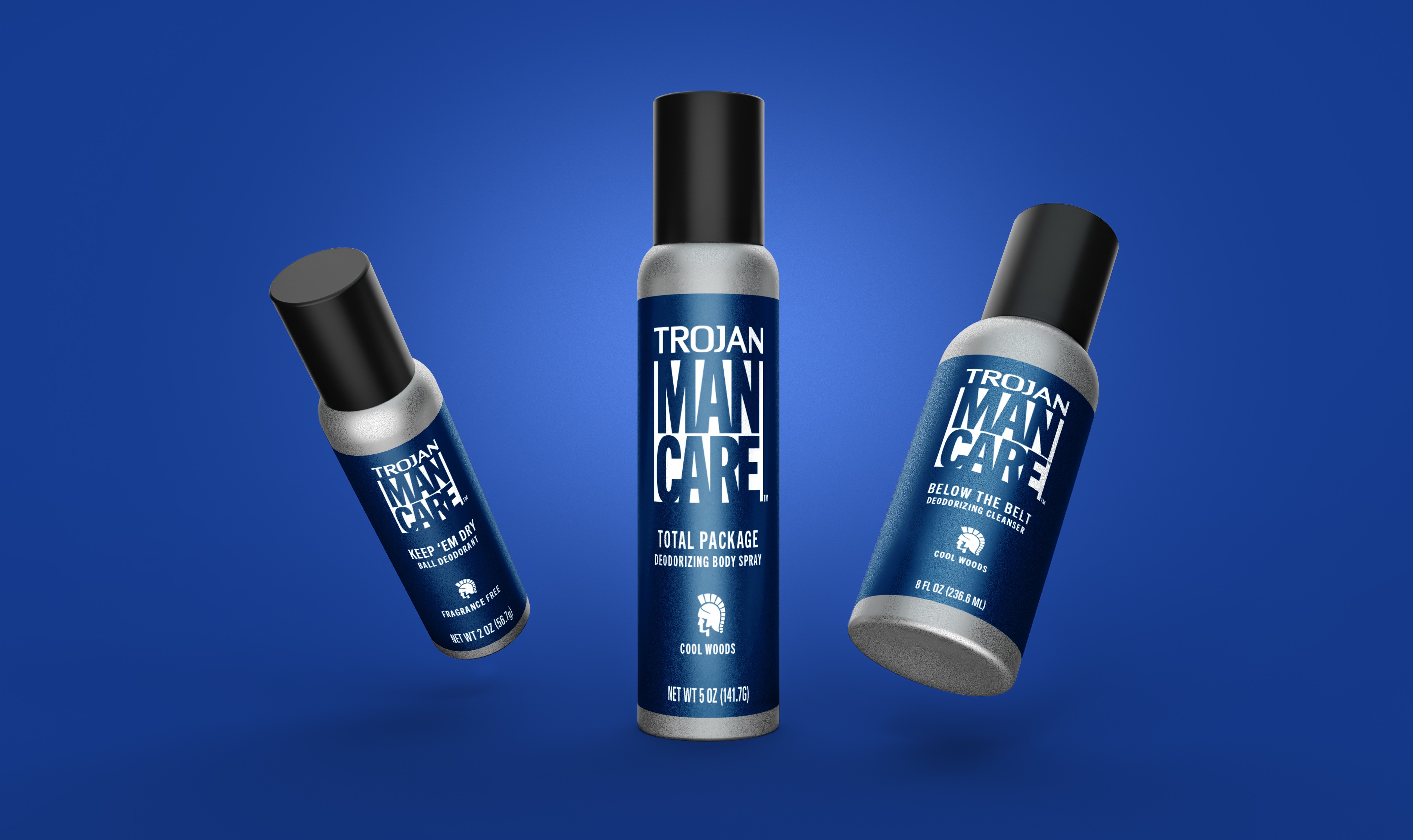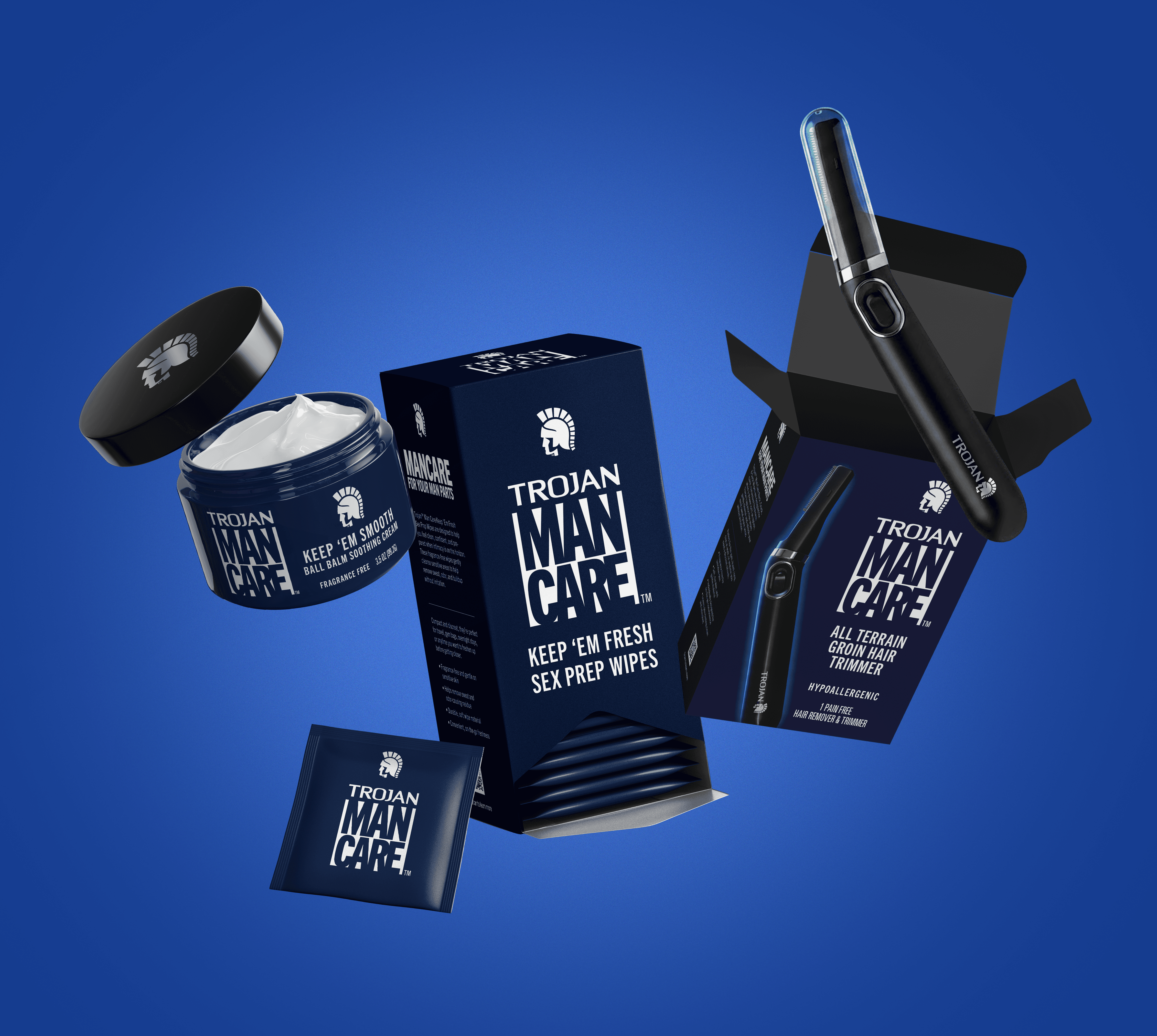 Sub-brand development for Trojan in the men's grooming space, built to stand alone and stay anchored to the master brand.